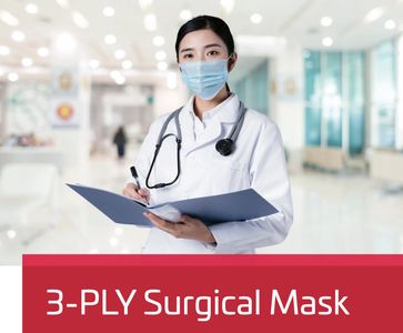 Surgical 3-Ply non-woven, pleated, rectangular mask.